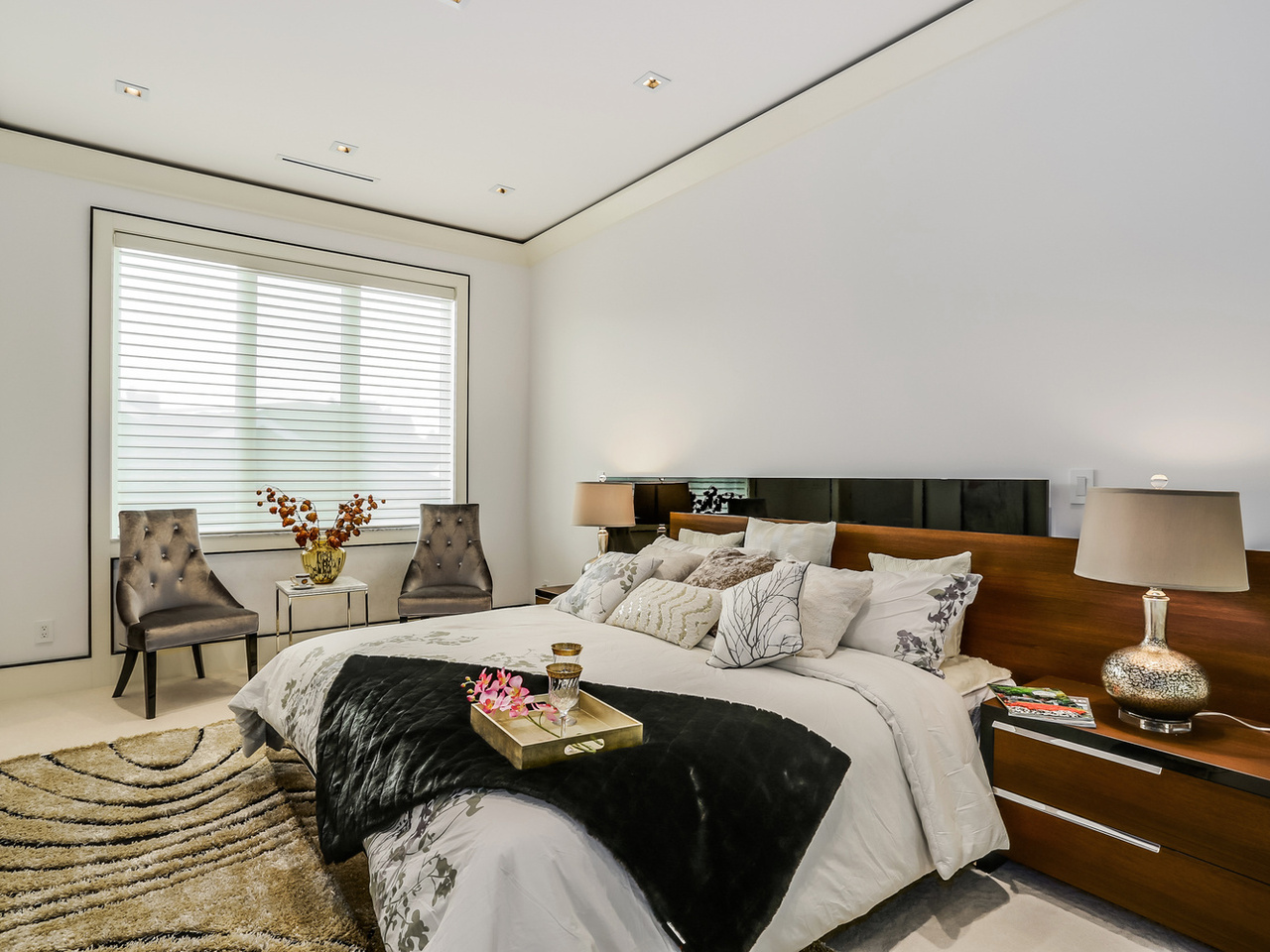 A standout residence defined by soaring vaulted ceilings, gold-fleck detailing, custom French cabinetry, and crystal chandeliers. Wrapped in park-like gardens and mature trees, it opens to greenbelt and North Shore mountain views from the main living spaces and primary suite.