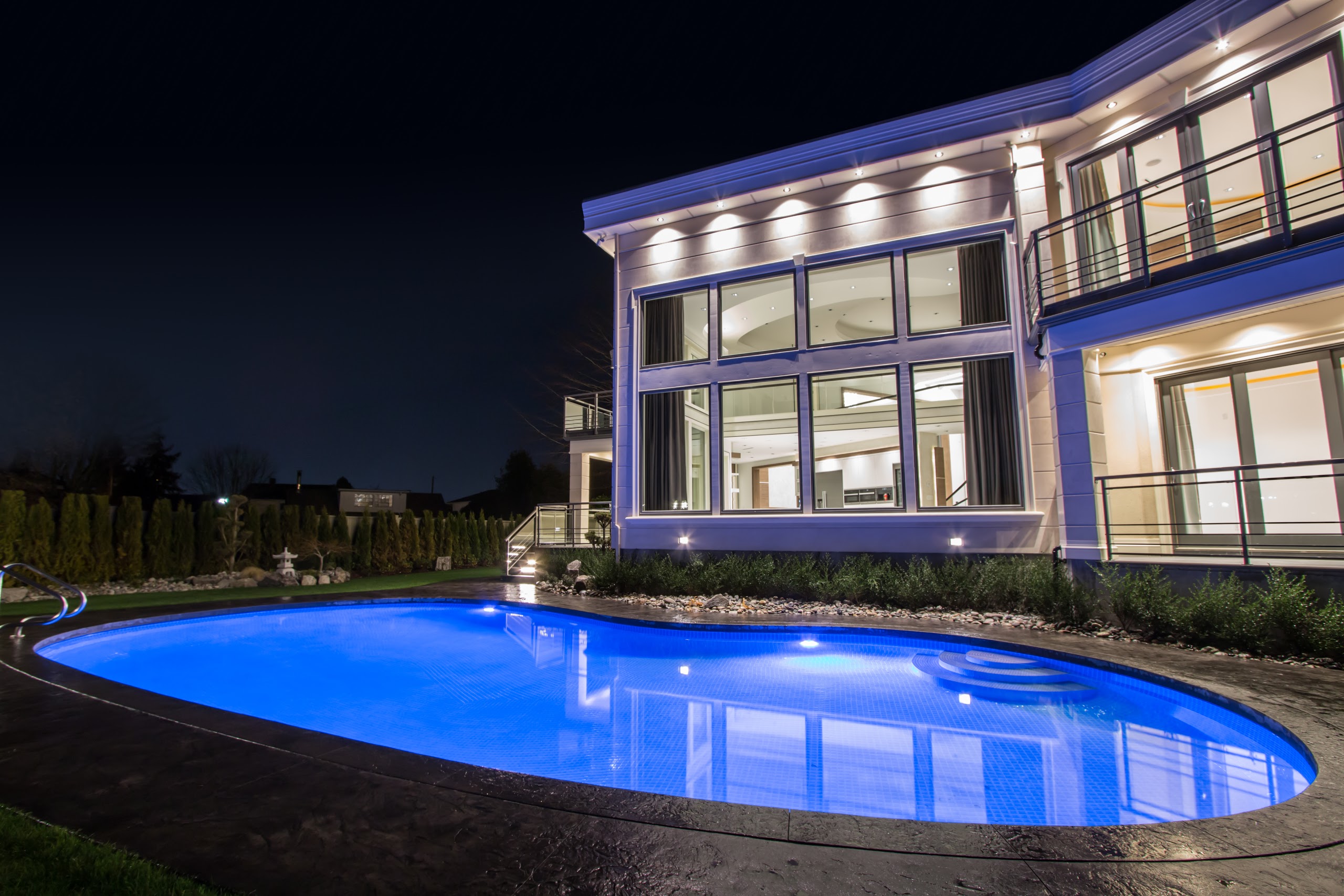 A beautiful outdoor pool and garden turn the backyard into a private retreat.